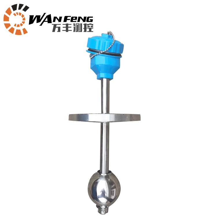 頂裝式浮球液位計(jì)由磁浮球、傳感器、變送器三部分組成。當(dāng)磁浮球隨液位變化,沿導(dǎo)管而上下浮動(dòng),浮球內(nèi)的磁鋼吸合傳感器內(nèi)相應(yīng)位置上的干簧管,使傳感器的總電阻(或電壓)發(fā)生變化,再由變送器將變化后的電阻(或電壓)信號(hào)轉(zhuǎn)換成4~20mA的電流信號(hào)輸出。同時(shí)我公司生產(chǎn)的XMTA-9000系列數(shù)字顯示調(diào)節(jié)儀可對(duì)液位進(jìn)行遠(yuǎn)距離測(cè)量。并可在顯示儀上設(shè)定上、下限報(bào)警,實(shí)現(xiàn)對(duì)液位的位式控制。